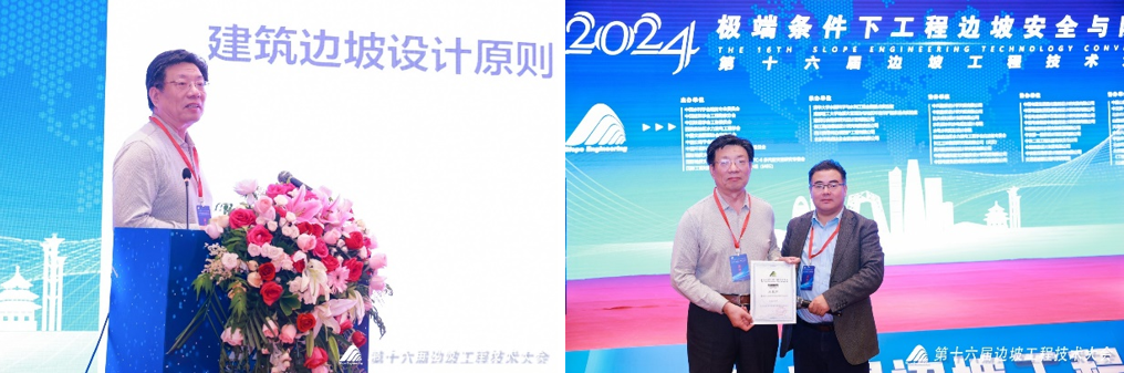 大会旨在交流与研讨边坡工程技术理论与实践经验,促进边坡工程技术向绿色、安全、数字化等方向高质量发展。以“极端条件下工程边坡安全与防护”为主题,涵盖了现代边坡工程技术发展现状及未来、边坡工程勘察与评价技术、复杂、极端条件下边坡防治技术、边坡工程安全智能监测预警技术、环境脆弱区边坡生态修复理论与技术、边坡工程施工新方法、新技术、新装备以及边坡工程数字化与智能化技术等多个议题,议题紧扣当前边坡工程领域的热点和难点问题,具有很强的针对性和实用性。我公司副总工程师周载阳教授级高级工程师受邀做主会场学术报告《复杂地形条件下建筑群边坡支护设计》。